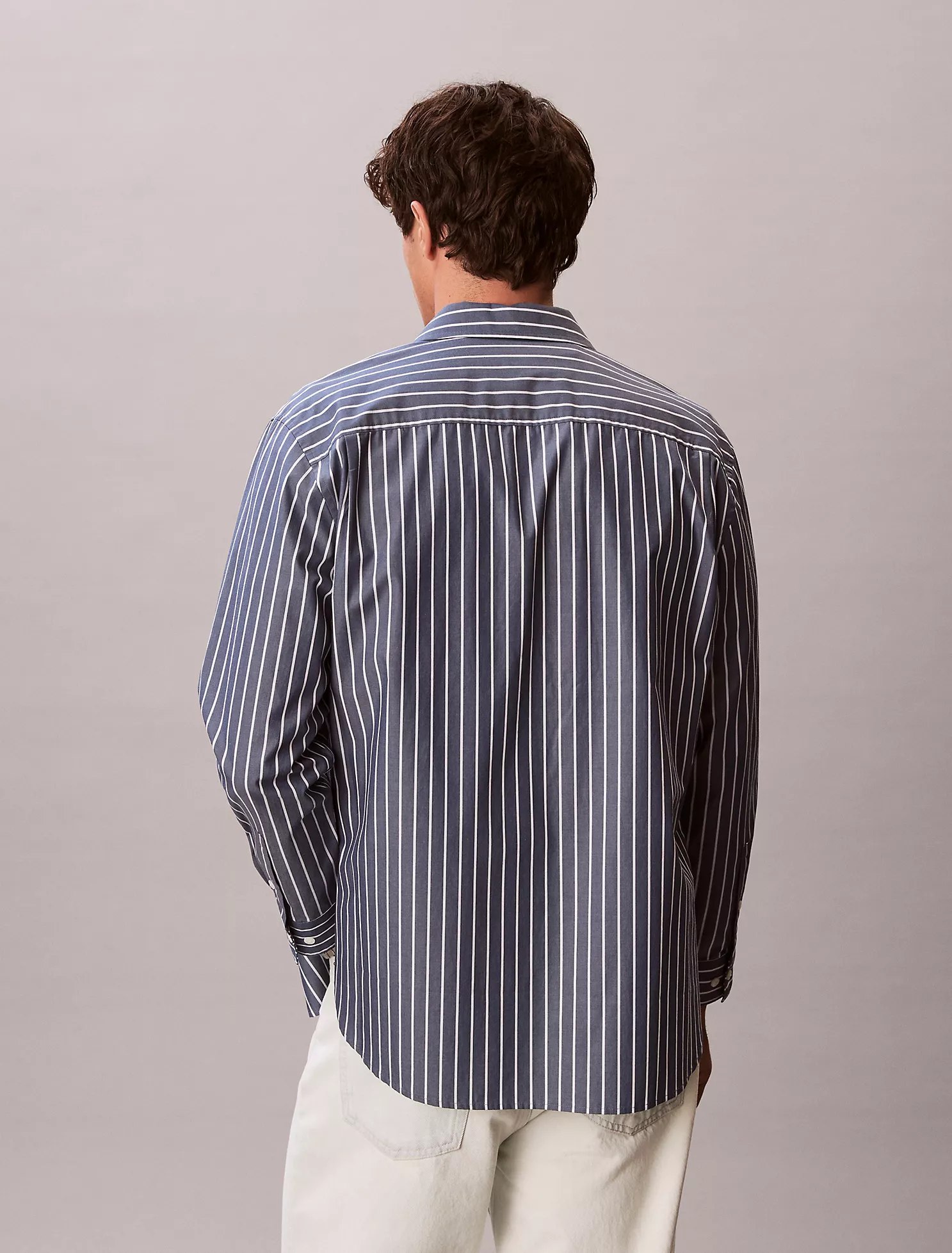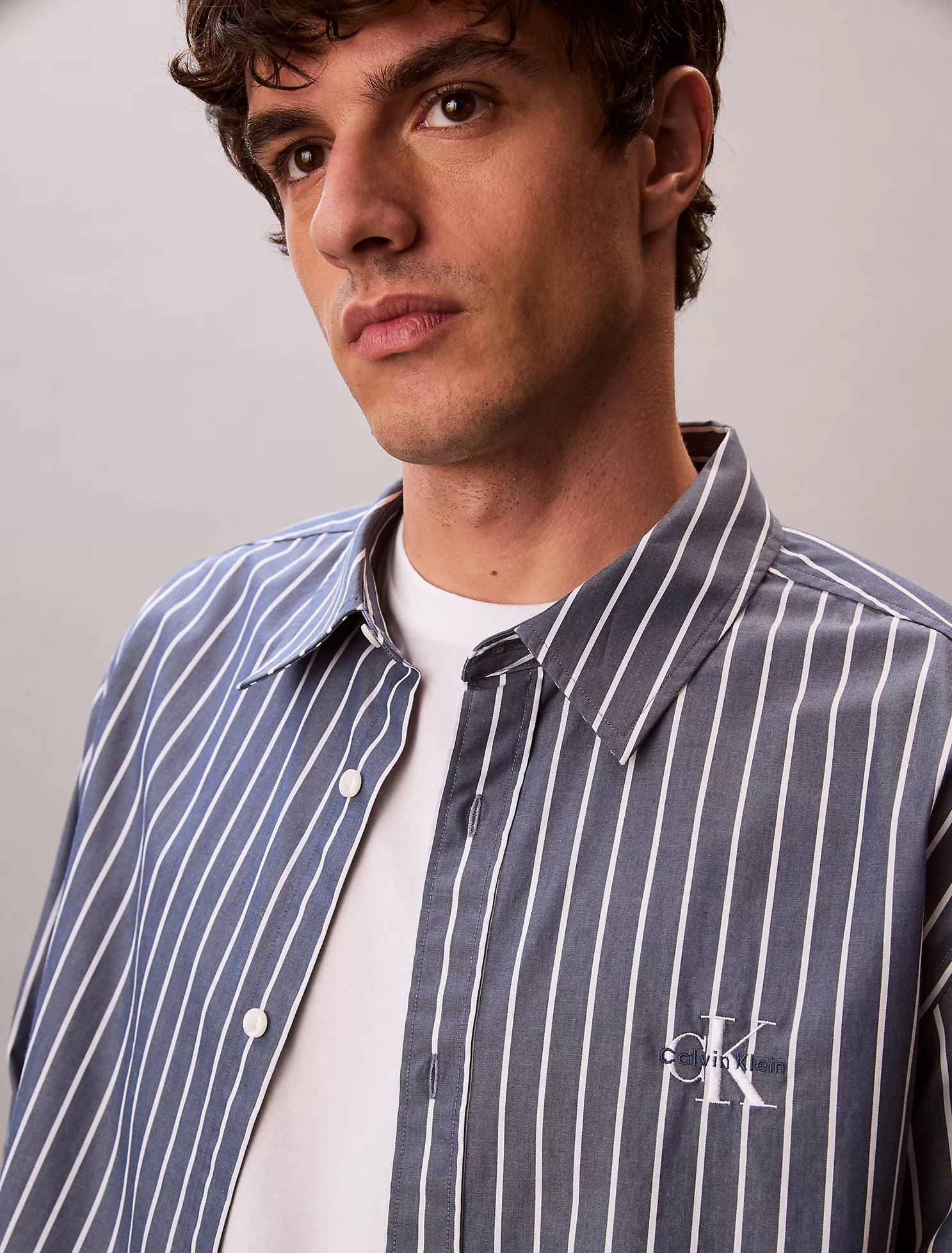 A relaxed poplin button-down shirt cut from 100% cotton. Patterned with stripes, this shirt has long sleeves and a point collar. Finished with the signature monologo at the upper chest.
