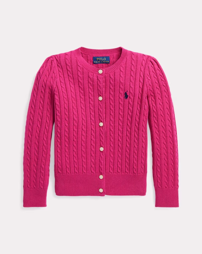Mini-Cable Cotton Cardigan Baby/Toddler/Kids Girls- Preppy Pink