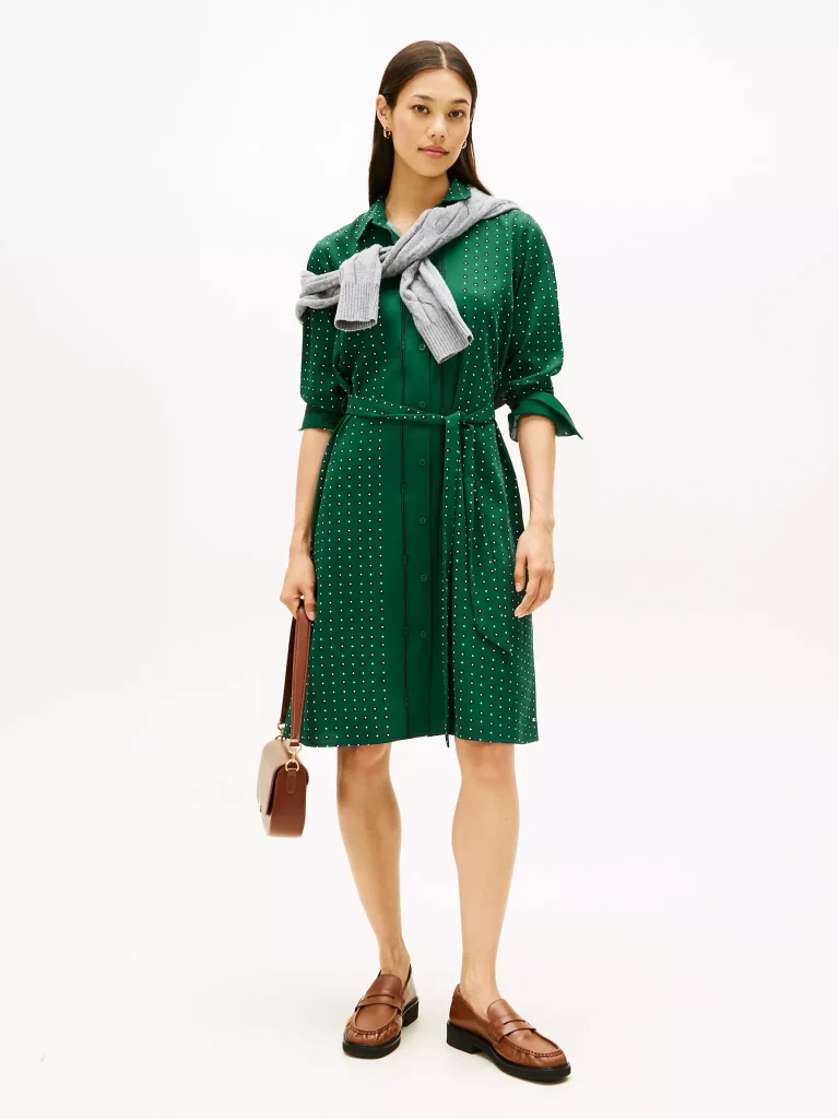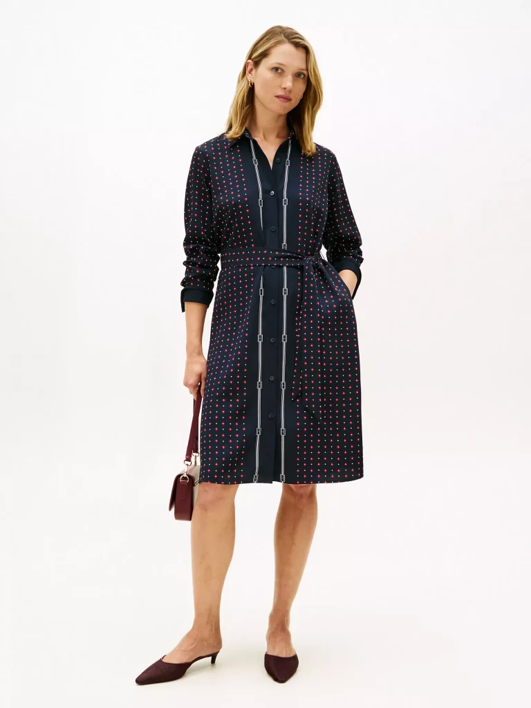 Fluid Crepe Belted Shirtdress-Navy Blue