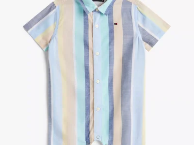 Babies’ Stripe Slub Cotton Shortall-Vessel Blue