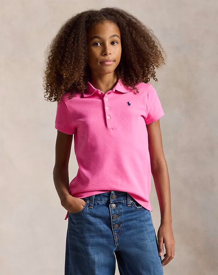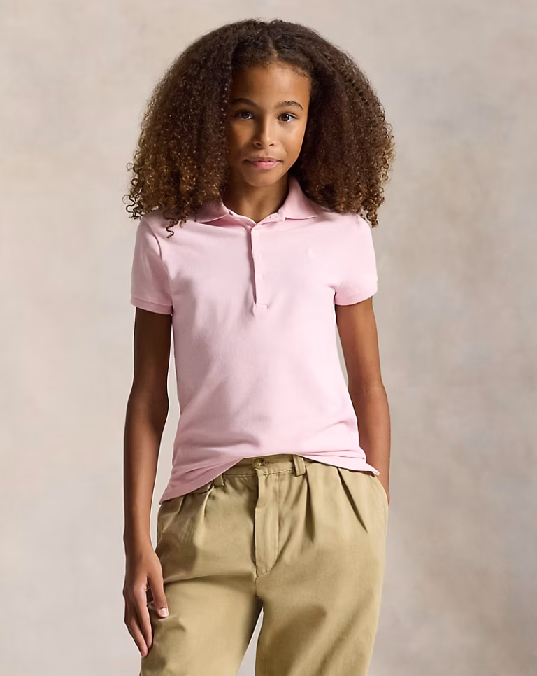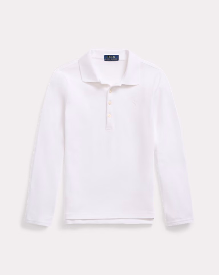 Mesh Uniform Long-Sleeve Polo Shirt Toddler/Kid Girls-White