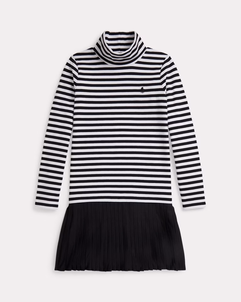 Striped Stretch Jersey Turtleneck Dress Toddler/Kid Girls-Polo Black/White