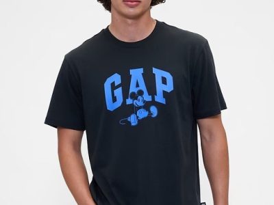 Gap × Disney Mickey Mouse Everyday Soft Relaxed Logo T-Shirt- Black Moonless Night