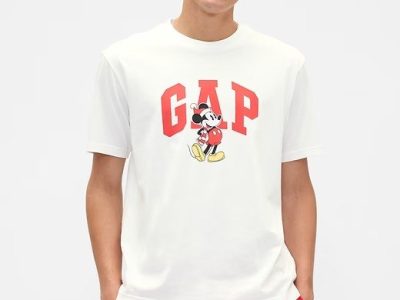 Gap × Disney Mickey Mouse Everyday Soft Relaxed Logo T-Shirt- Disney Family Santa White