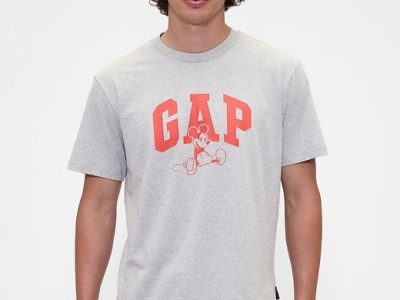 Gap × Disney Mickey Mouse Everyday Soft Relaxed Logo T-Shirt- Gray And White Marl
